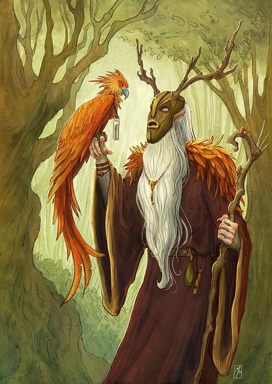 This is a digital painting of Almajest the Wizard from Nevathi painted by Michelle Papadopoulos